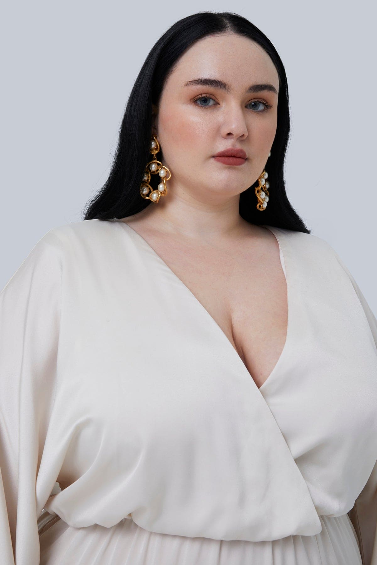 Gia: Bust 47.5”, Waist 39”, Hip 53”, Height 5’7”, Wearing Size 2